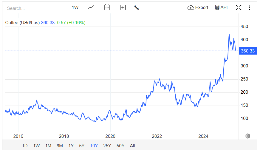 커피 생산량의 문제점은 수십 년 전부터 지적되던 문제였습니다. 기후 변화로 인해 커피나무 경작지는 지속해서 변화하고 있습니다. 아라비카 커피나무는 더위나 추위에 약하기 때문에 전통적 커피 산지들에서는 해발고도를 높여서 새로운 경작지를 만드는 상황입니다. 커피 최대 생산지인 브라질에서는 가뭄과 고온 현상 때문에 미나스 제라이스 주 등에서 심각한 타격을 입었고 전년 대비 12%가량 생산량이 줄었다는 보고가 있습니다. 반면 로부스타 생산 지역에서 생산량이 늘었다는 보고가 있습니다. 하지만 로부스타 최대 생산 지역인 베트남의 커피 경작지는 지속해서 줄어들 가능성이 있는 것으로 보입니다. 중국에서 두리안 수요가 크게 늘면서 두리안의 판매가격이 높아짐에 따라 로부스타 경작지를 두리안 경작지로 바꾸는 농부들이 꾸준히 늘고 있다는 기사도 있습니다.